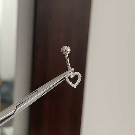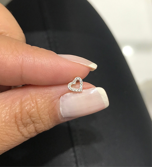 Piercing coração cravejado vazado (Prata 925)