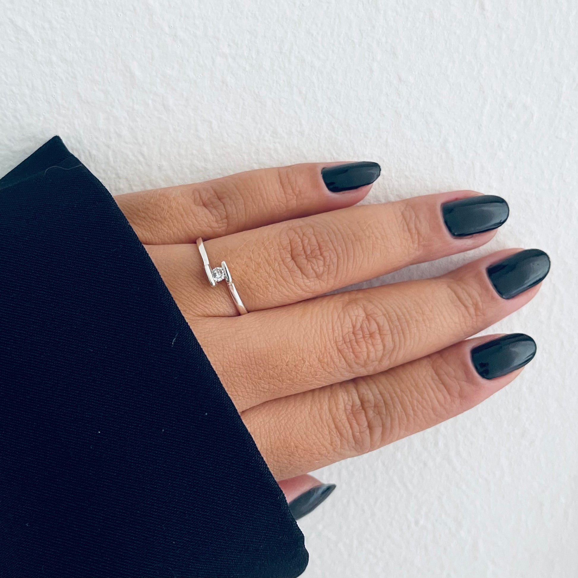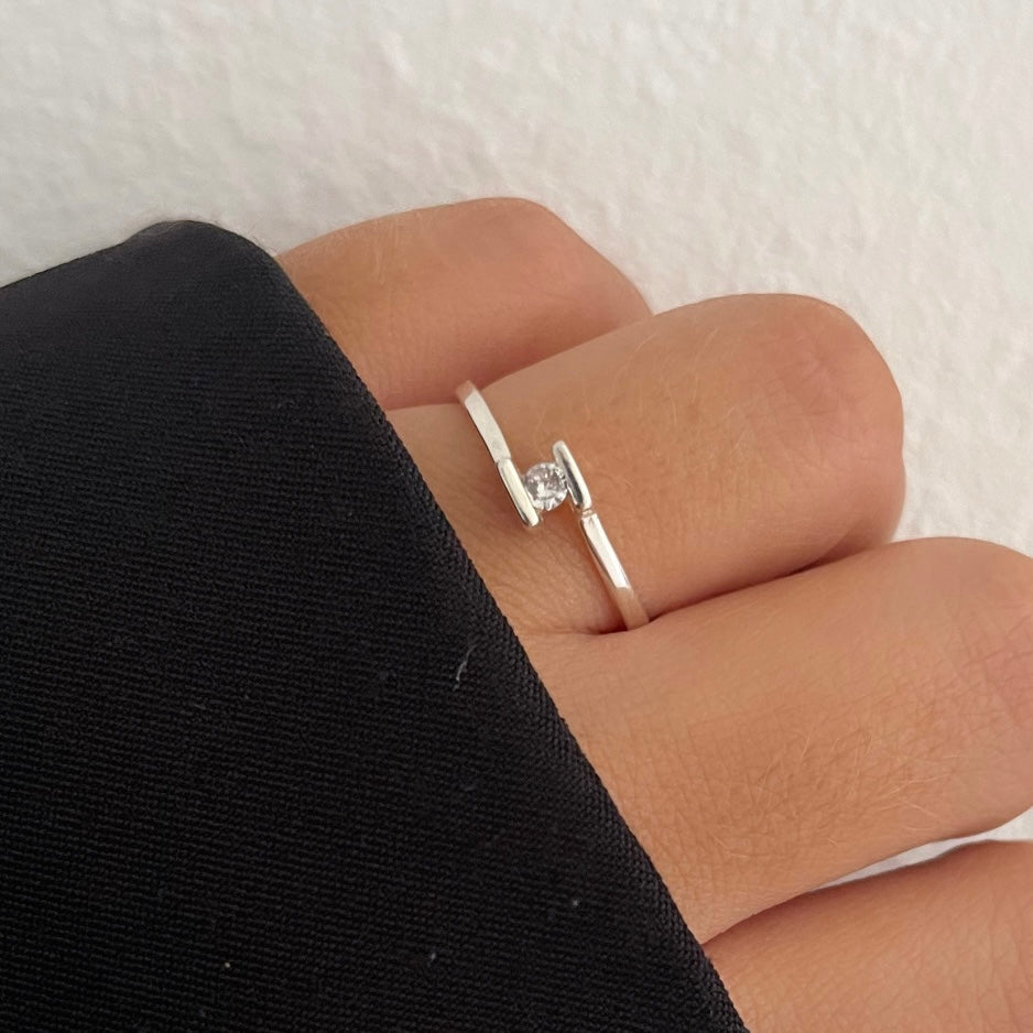 Anel com 1 pedra de zircônia no meio de 2mm;