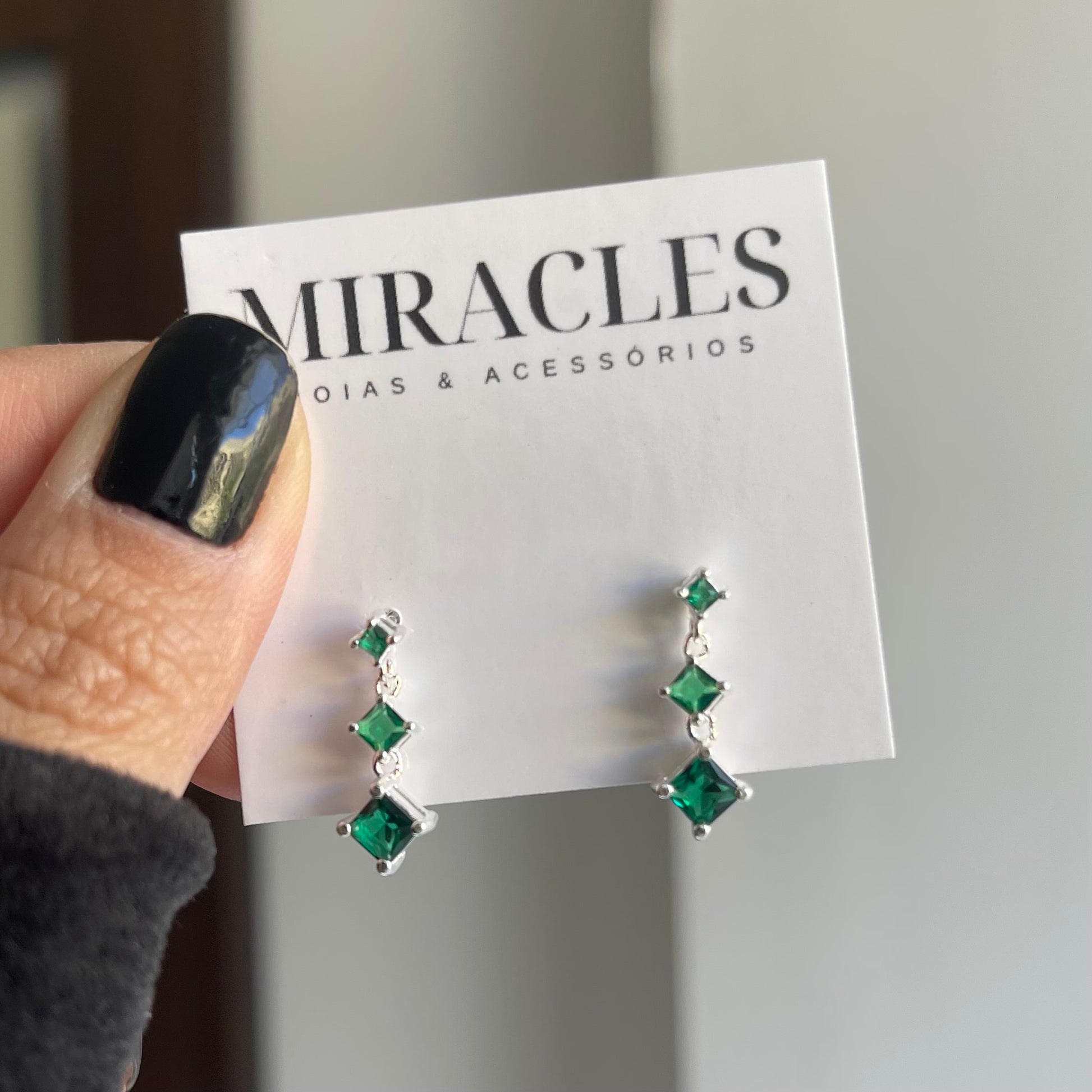 Formato: Brinco caído com 3 pedras de zircônia verde