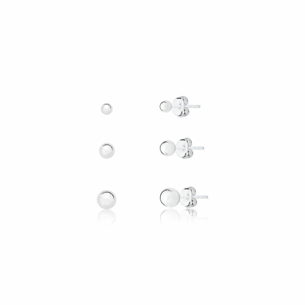 Trio de brincos em prata 925 com design delicado e clássico, ideal para quem possui três furos na mesma orelha;