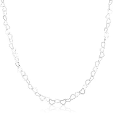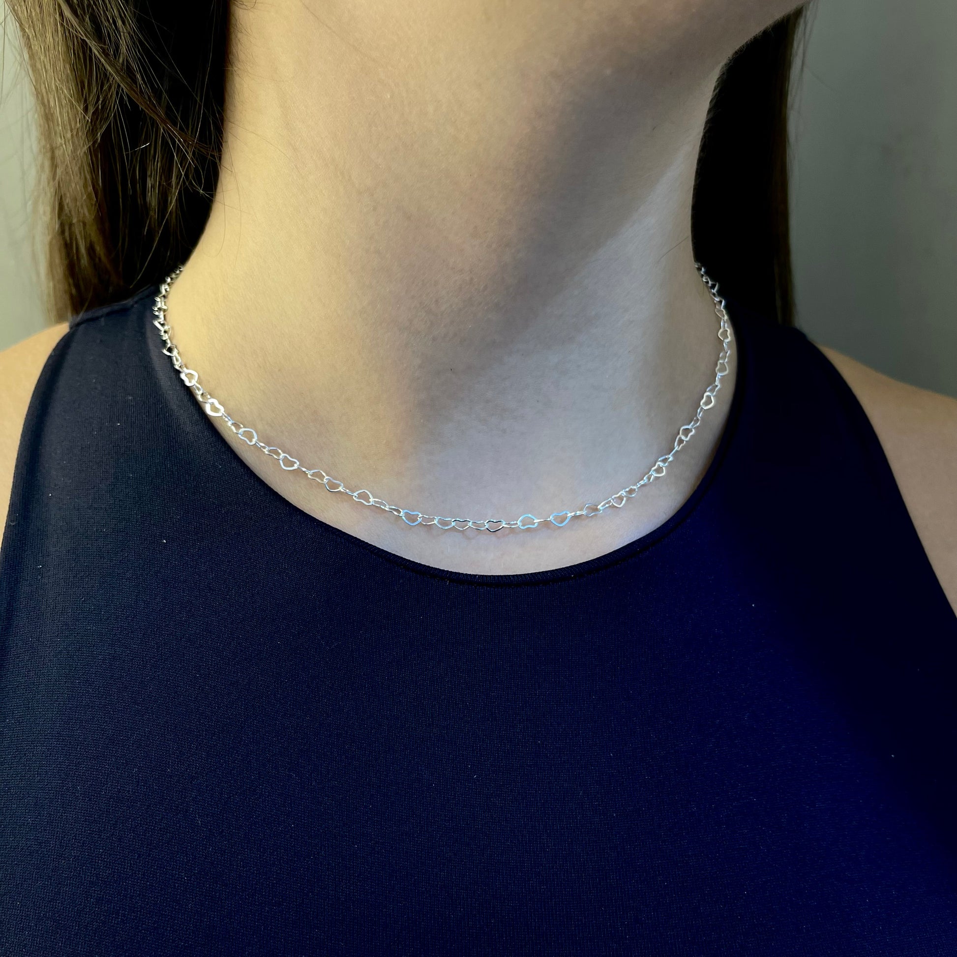 Corrente de 45cm com pequenos elos de corações de 4mm cada;