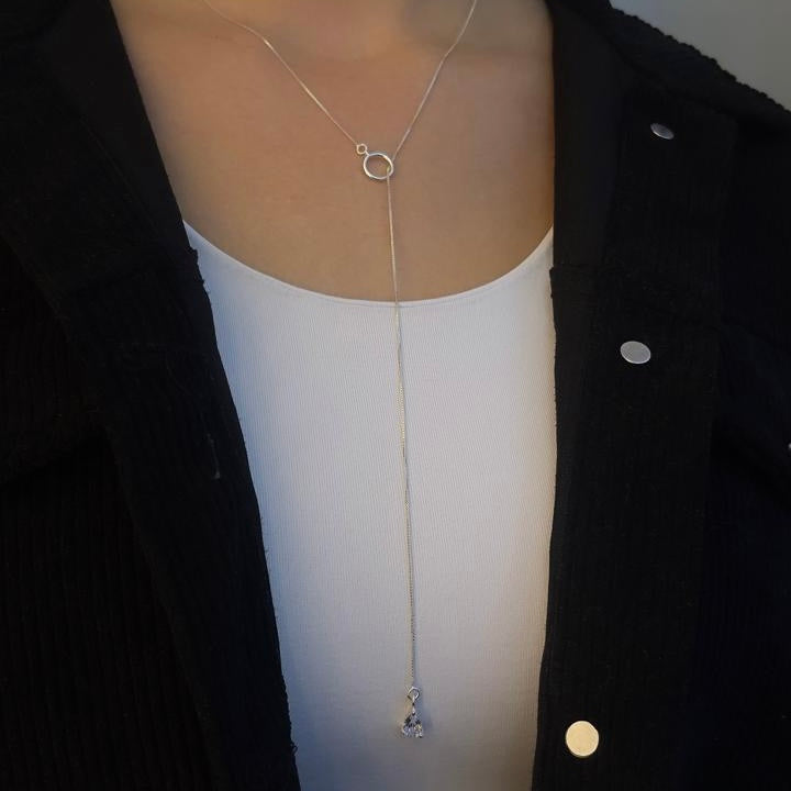 Pingente ponto de luz gota (pedra zircônia) fica na ponta do colar