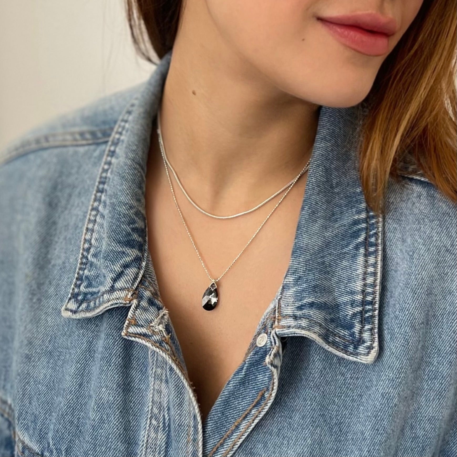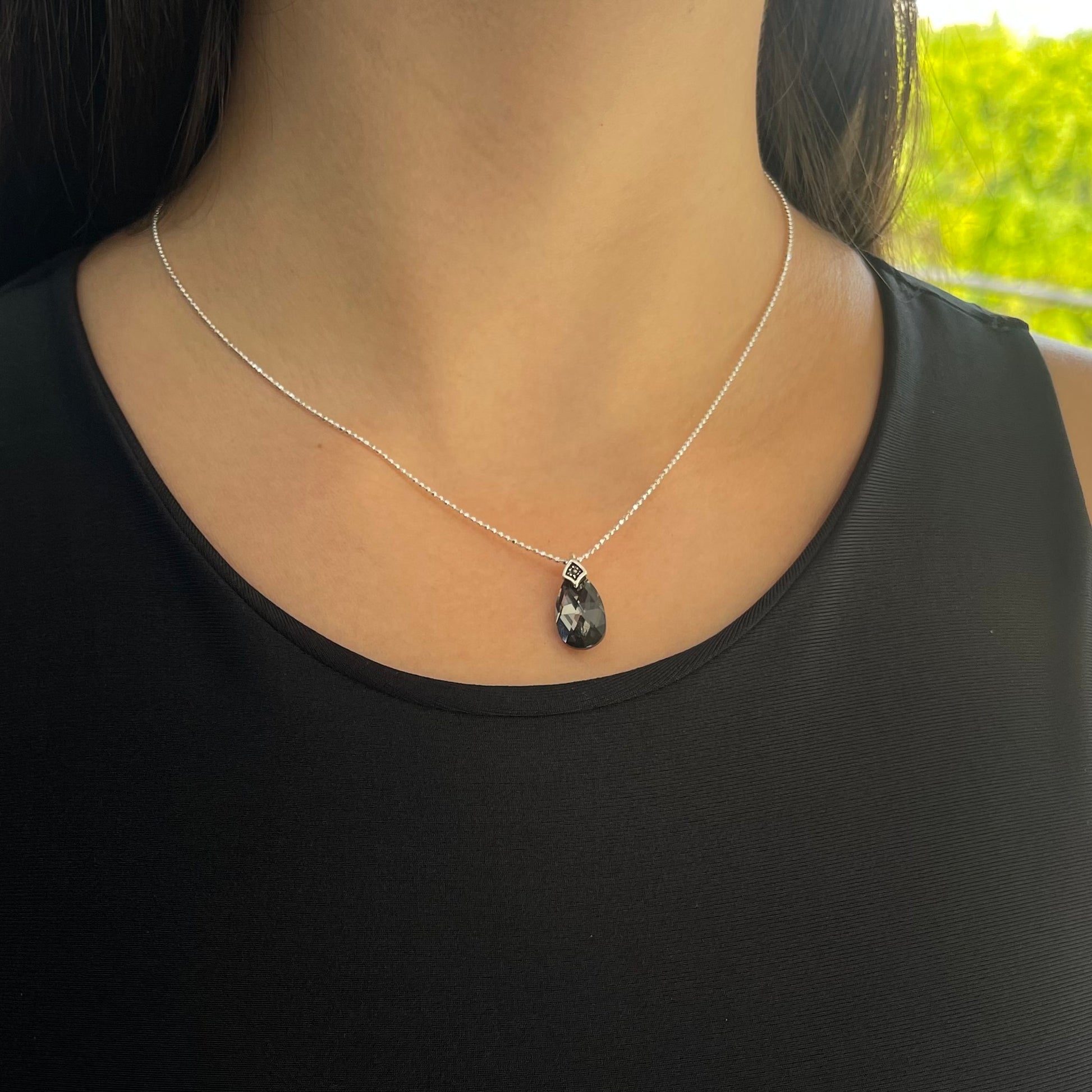 Colar Gota de Zircônia Oval Black, com Corrente Bolinha Diamantada em Prata 925
