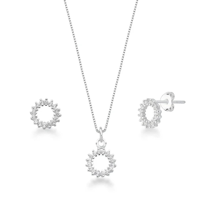 Conjunto Colar e Brinco Vazado com Zircônias em Prata 925