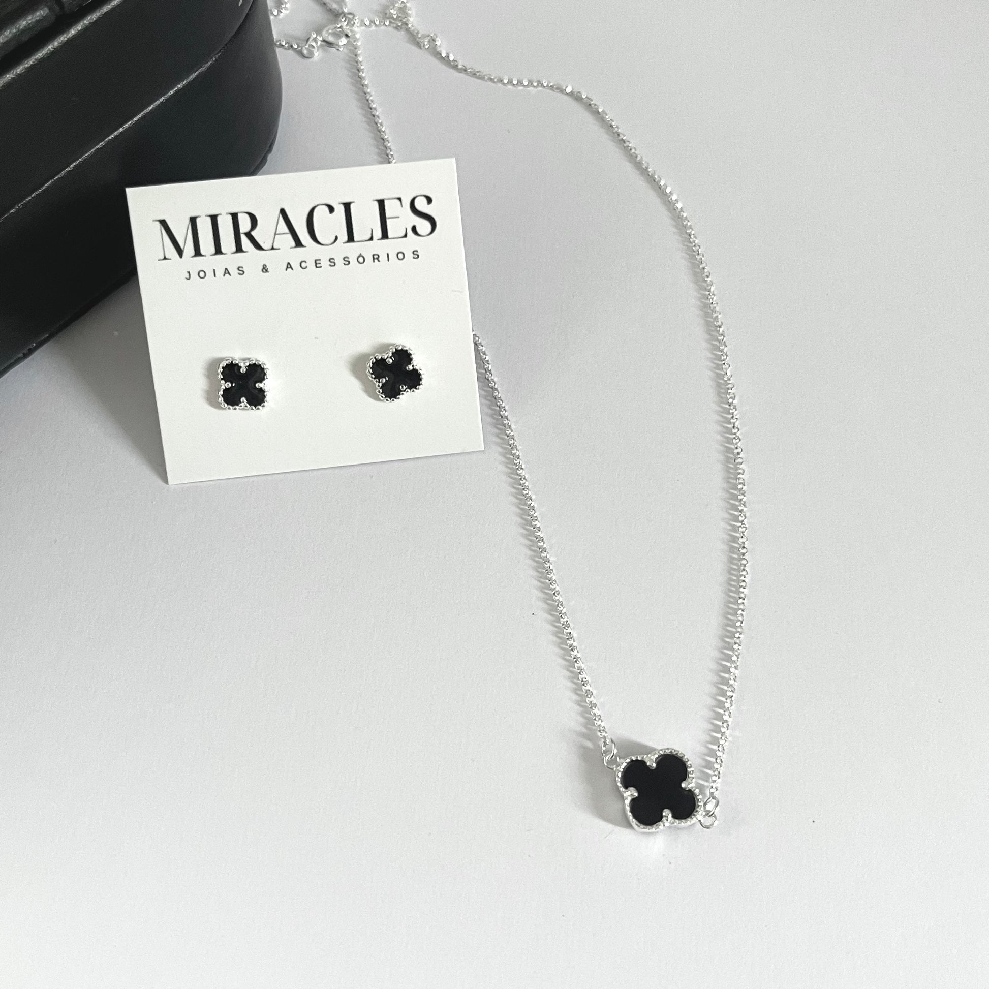 Delicado e cheio de personalidade, o conjunto Trevo é feito em prata 925 e traz a força do símbolo da sorte com um toque sofisticado da pedra preta.