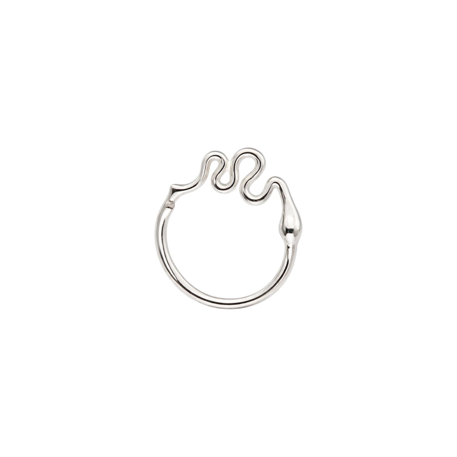 Piercing de prata, com design delicado que imita o formato de uma cobra, trazendo um visual moderno, ousado e cheio de personalidade. Seu acabamento liso e orgânico valoriza o detalhe do movimento da peça, sendo ideal para quem busca um acessório diferenciado e sofisticado. Modelo leve, confortável e discreto, desenvolvido especialmente para uso no daith.