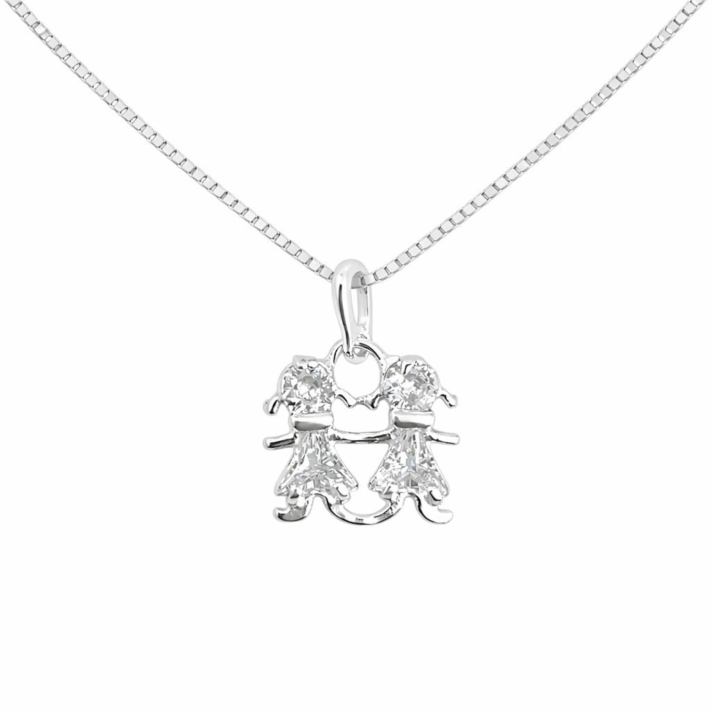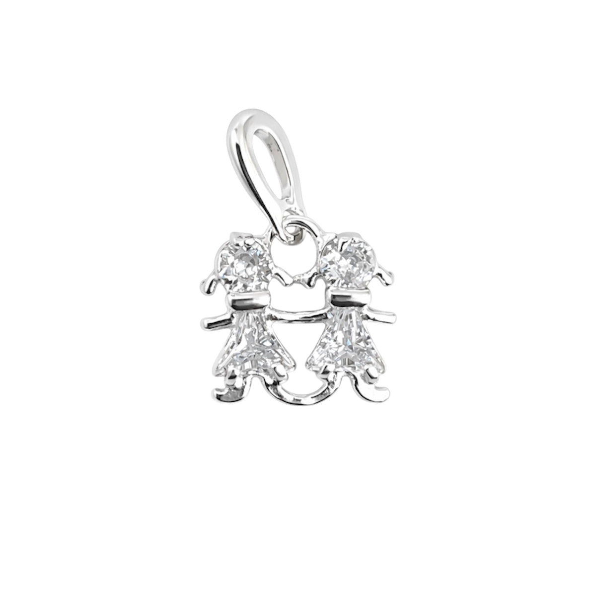 Formato: Pingente de duas meninas unidas cravejadas em zircônia