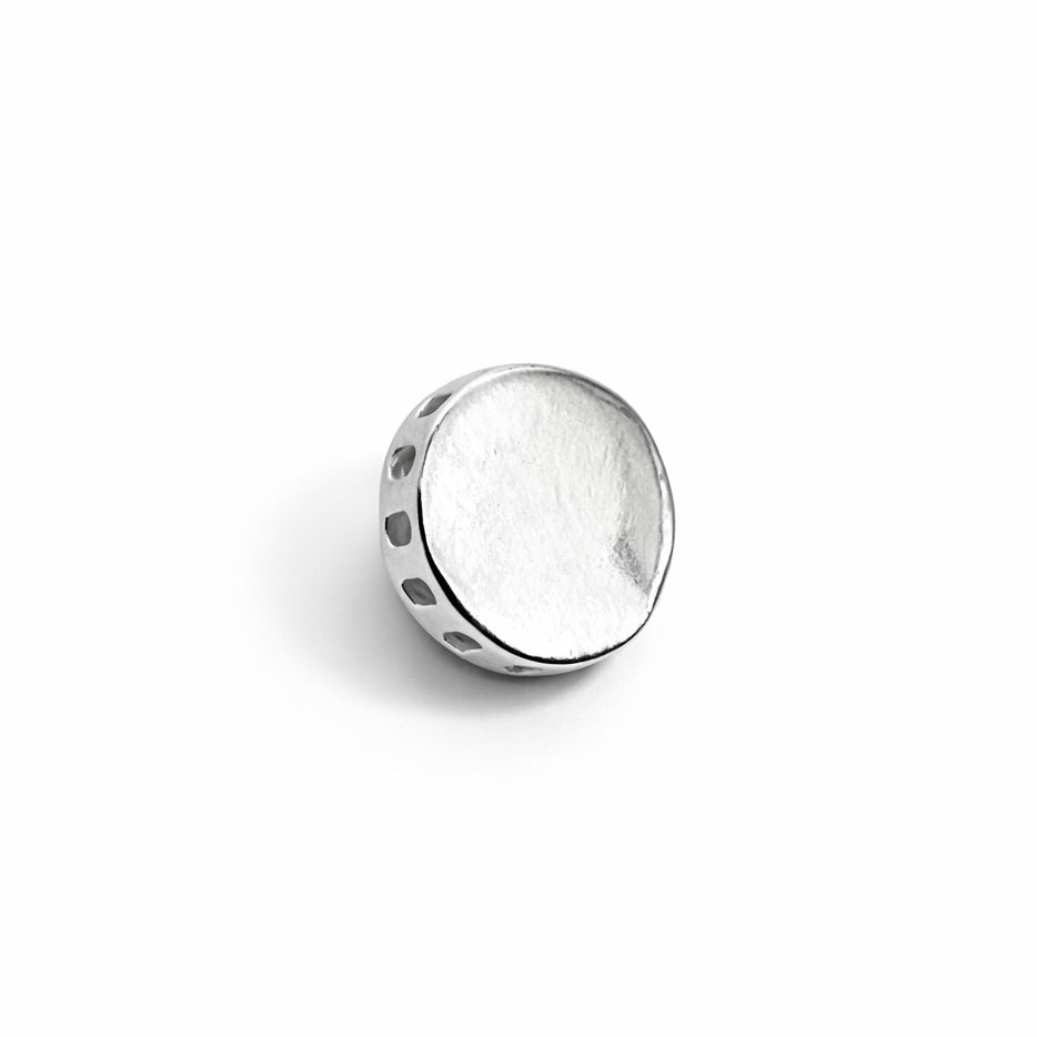 Formato: Pingente redondo liso em prata polida, ideal para gravação personalizada.