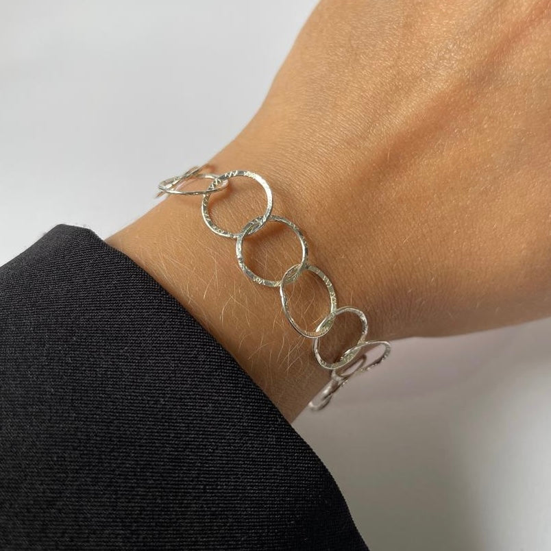 Detalhes da pulseira: Pulseira composta por 15 elos de 14mm.