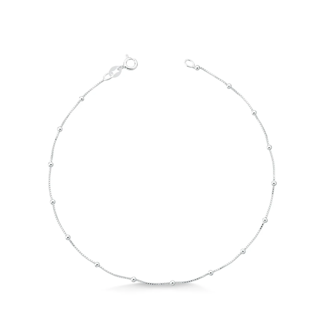 Tornozeleira modelo com mini bolinhas com a corrente veneziana;
