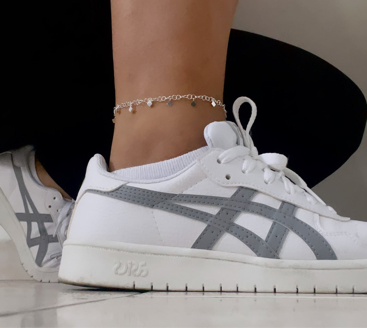 Tornozeleira plaquinha pendurada